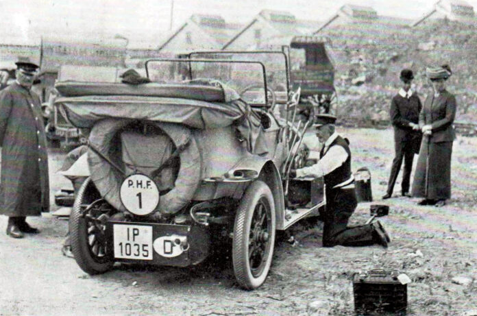 Some unpleasantness befell the tourists this time: one car was immolated by a spectator’s discarded match while refuelling, another hit a tree, killing its driver, and all were drenched by thunderstorms. The winner was Ferdinand Porsche in an Austro-Daimler of his own design – which was promptly added to the Austrian manufacturer’s range, with its “remarkably interesting” engine.
