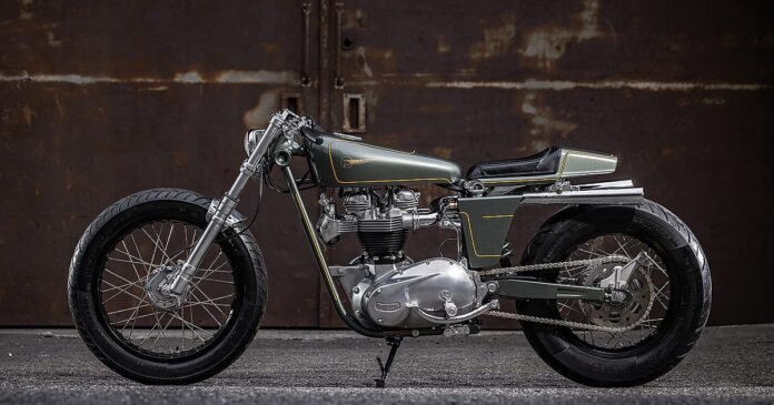 A 1965 Triumph was chosen as a donor, but very little of the original bike was retained. Most of what you’re looking at here was built from scratch—starting with the Triumph’s impossibly elegant twin-down-tube frame.