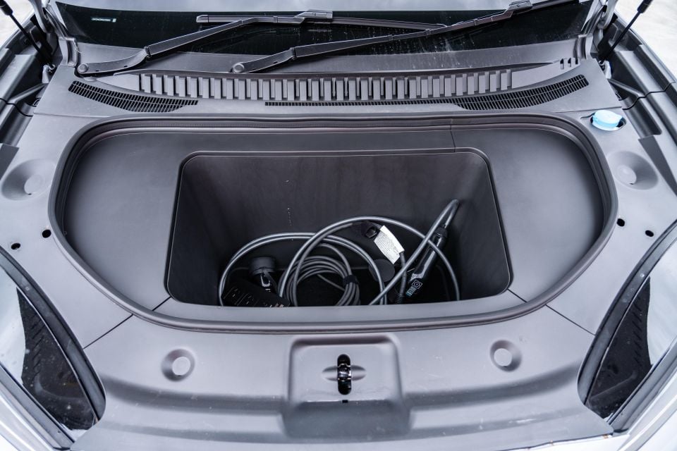 I also appreciate the Tesla-style dual felt-lined phone holders ahead of the shifter, with one doubling up as a wireless phone charger with a cooling vent to prevent overheating.