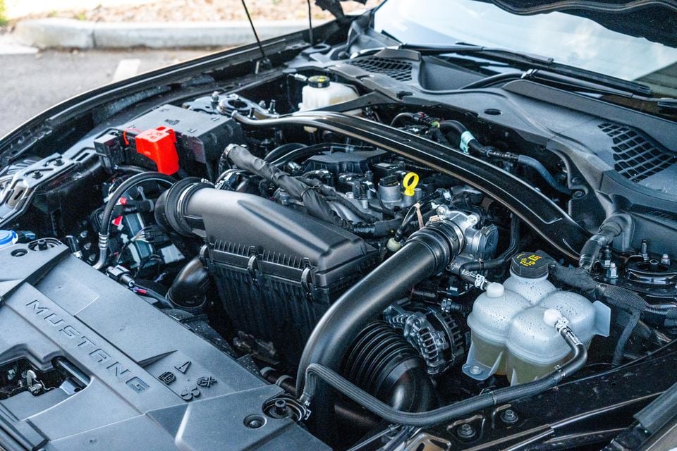 After all, modern takes on Ford’s famous muscle car have become synonymous with eight-cylinder power, and that’s nowhere to be seen in this base model.