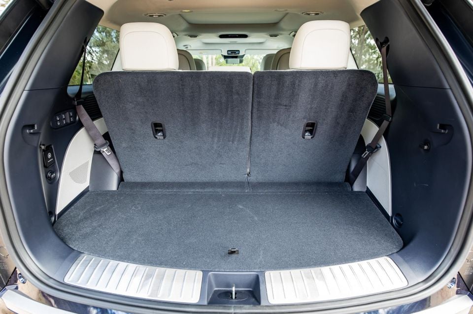 Clearly, boot space is a big factor for a car like this, and with the added usability of that sliding and folding third row, you can have either 300 litres of cargo space behind the back row, or 712L with it stowed. That’s a huge amount of space if you’re thinking of this as a ‘big five-seat SUV’ instead of a three-row option.