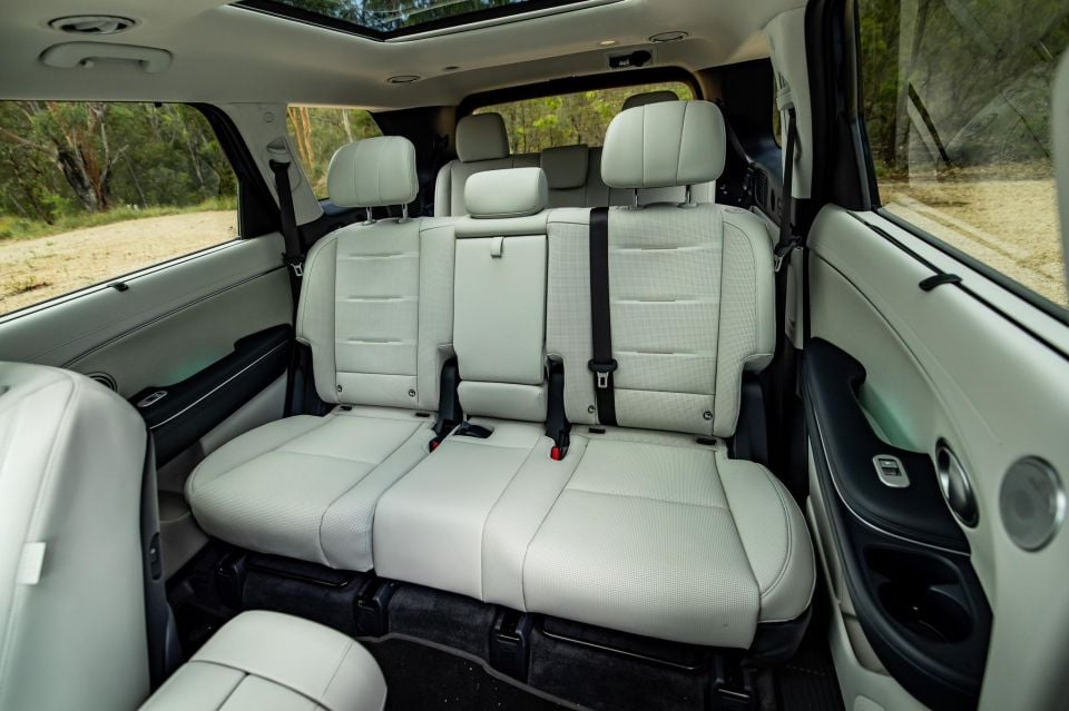 But if you’re more likely to just fit car seats back there, then you’ll be stoked to learn there are ISOFIX points and top-tethers for the side positions, and there’s seat heating in those spots too.