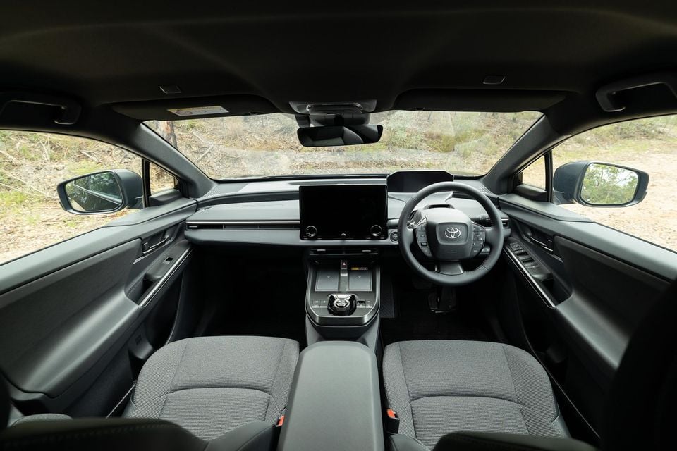 Under those chargers is a spot for your owner’s manual or logbooks, because the bZ4X doesn’t have a glovebox – that helps free up some space, but mightn’t be practical for all owners.