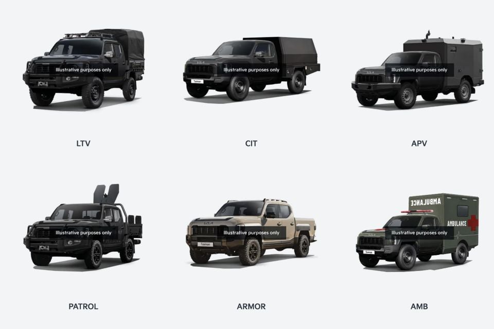 Interestingly, the other military vehicles shown on the page are based on the existing Tasman body and have the text “Illustrative purposes only” slapped on them.