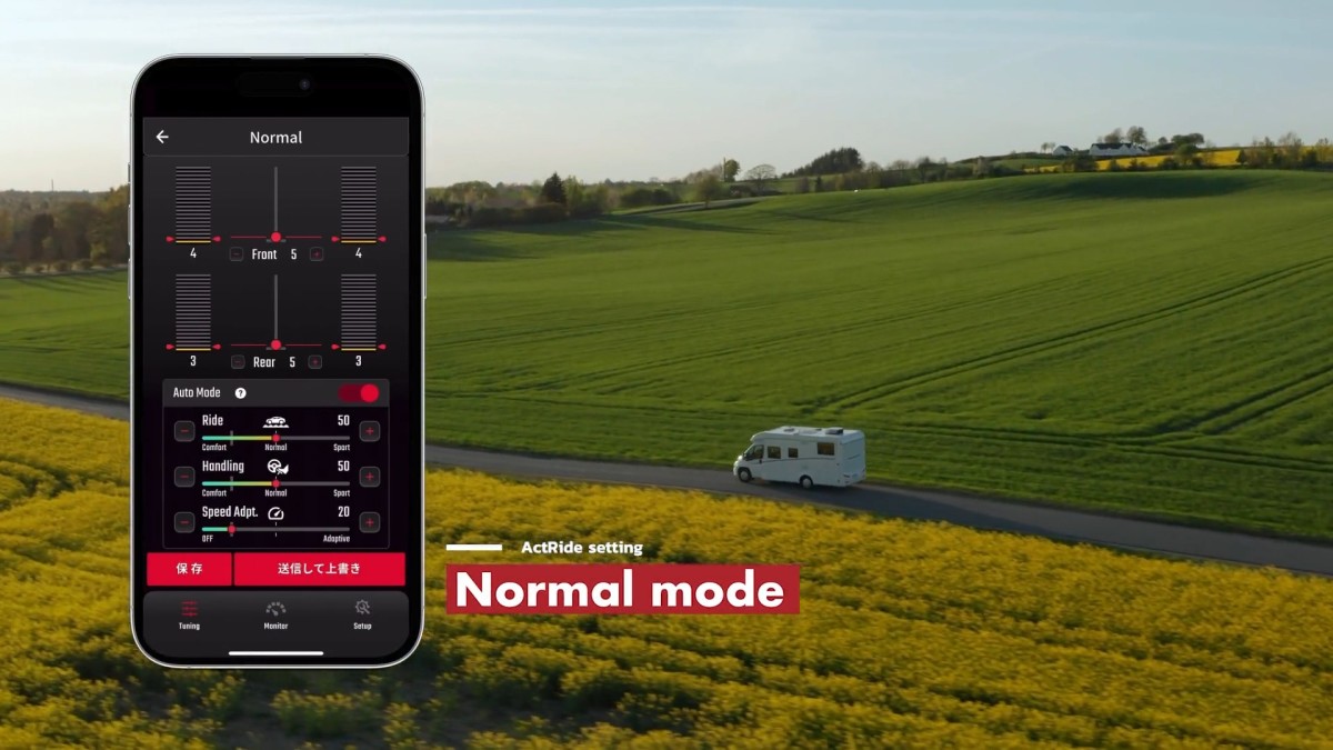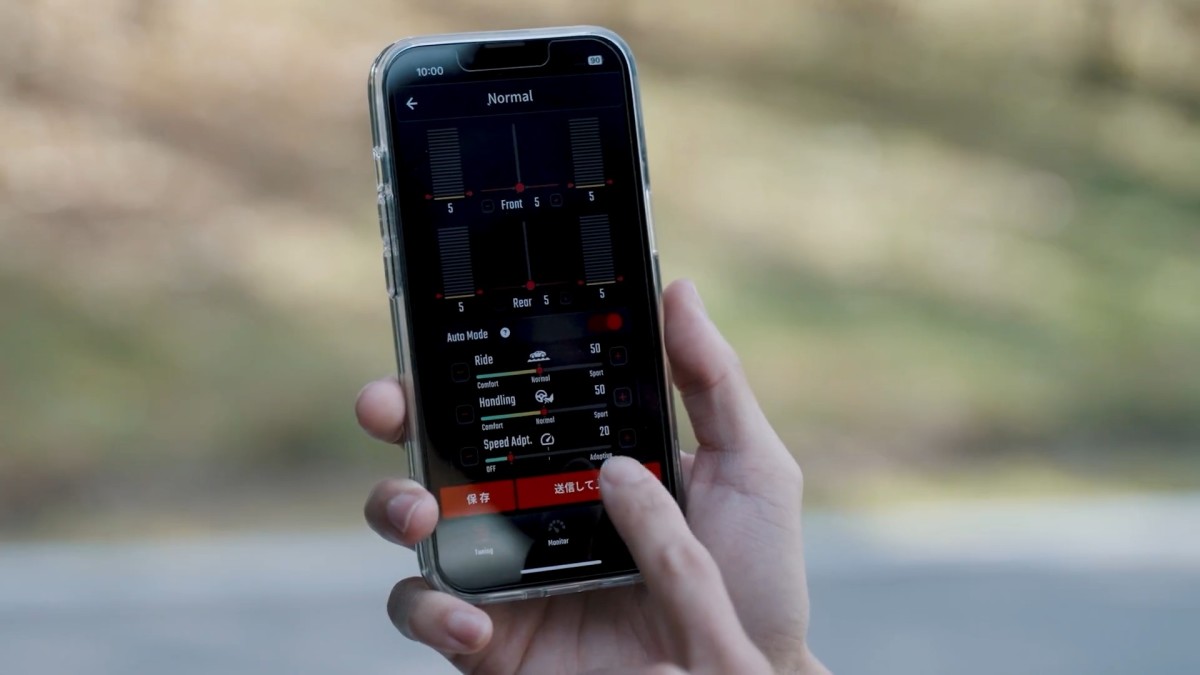 The app is your control center. You can tweak damping for the front and rear, shift the balance between comfort and handling, and even set how the suspension reacts to speed. Each setting is adjustable from 0 to 100, and changes take effect right away – even while you’re driving.
